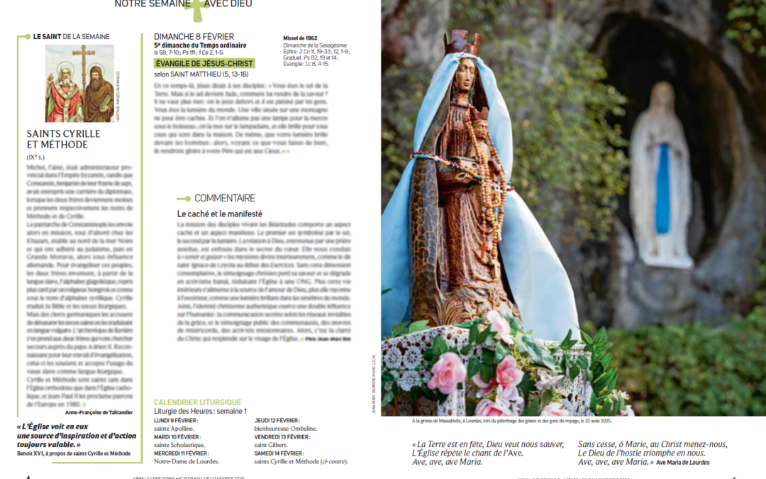 Parution dans le numéro du 7 février de Famille Chrétienne, photo extraite d’un reportage à Lourdes consacré au pèlerinage des Gitans.